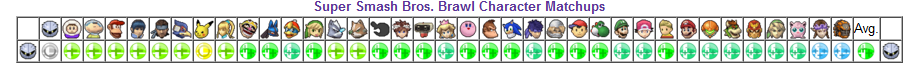 In Super Smash Brothers Brawl, Meta Knight was an absolute terror that invalidated most of the cast, and even with the characters he didn't invalidate, he was more often than not favored in the match-up. I mean... look at this!